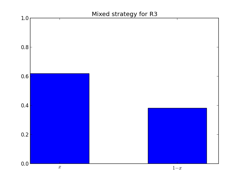 On Monday my Game Theory class and I took a look the connection between extensive form games and normal form games (leading to subgame perfection) which correspond to these two chapters of my course: C7 and C8 but before starting that we took another look at best responses to mixed strategies (this Chapter of my course).
